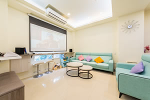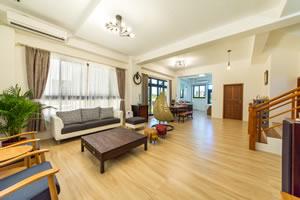 寬敞的庭院,每房有60吋液晶電視,大廳有110吋投影螢幕備有家庭電影院功能,提供麻將